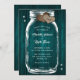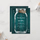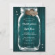 Teal Mason Jar Burlap Hearts Barn Wood Wedding Invitation