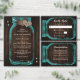 Rustic teal wedding save the date postcard featuring a mason jar with string lights and burlap hearts against a barn wood background adorned with twinkle lights. Easily personalise this teal save the date postcard online. Matching items available to complement this teal wedding save the date.