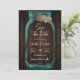 Rustic teal wedding save the date card featuring a mason jar and burlap hearts against a barn wood background. Easily personalize this romantic rustic teal wedding save the date online. Matching items available to complement this teal wedding save the date card.