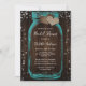 Teal Mason Jar Wood Rustic Bridal Shower Invitation