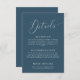 Elegant and minimal wedding invitation enclosure card featuring modern script text at the top on a teal background. Customise this invite by adding information on your wedding including reception, accommodation, and website. Perfect for any season.