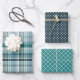Fun colourful wrapping paper set. With cute gingham plaid tartan stripes and polkadots designs in light and dark teal blue green and white colours. Ornate, funky, modern and whimsical hipster design for the lover of Spring and Easter themes. This original, classy, chic, stylish and perfect gift wrap will put a smile on the faces of friends and family when unwrapping their Spring break holiday presents.
