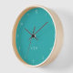 Teal Monogram | Modern Turquoise Cyan Blue Clock