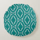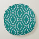This striking repeating pattern showcases a series of white outlined ogee shapes alternating with inner quatrefoil-like figures, all set on a textured, deep teal background, creating a visually dynamic effect.