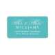 Vibrant teal blue creates a fresh, bold backdrop for elegant white flourishing calligraphy spelling "Mr. & Mrs." on this wedding return address label. The family name and address appear in graceful small caps for a stylish, modern finishing touch. All text is fully customisable.