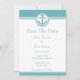 Announce your upcoming wedding day with a Teal Nautical Anchor save the date announcement. Announcement design features a white background with a teal border and nautical anchor embellishment. Additional wedding stationery available with this design as well. Need help with customisation? Please contact me and I will work out the wording and details to fit this design to your satisfaction.