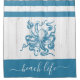 “Beach life”. Whenever you shower with this seaside shower curtain, you can be rest assured the summer seashore fun will continue. A graphic, dusty teal blue vintage octopus overlays beachy white rustic, weathered, coastal wood. Great for the family beach house, your nautical lifestyle, or just to bring a bit of the beach into your home all year round!