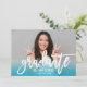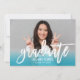 Celebrate your graduate with this vibrant graduation party invitation featuring a bold white brushed "graduate" script overlay across a senior portrait with a teal ombre colour fade. The back keeps party details fresh with coordinating teal typography on a clean white background. Fully customisable text on both sides makes personalising effortless.