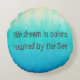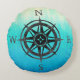 Teal Ombre Sea Round Throw Pillow. A compass rose to keep your ocean bearings. Enjoy the stylish optical illusion effect with the teal to blue tones of the ombre background. Keep the quote "We dream in colours inspired by the sea" or add a name, sentiment, or monogram to customise. Fun, flirty and fabulous style!