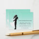 This design features a teal ombre background with a silhouette of a bride and groom. A cluster of stars in the shape of a heart behind the happy couple completes the look of this romantic design. There is plenty of customisable text for you to add your reception information. The reverse side of this trendy reception card has the same design with customisable text for the bride and groom names and wedding date or if you prefer, delete this text field. We have this design available in a variety of colours and on a variety of products!
