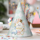 This Alice Onederland-themed party hat is an enchanting accessory for a girl's first birthday celebration. Designed with a whimsical touch, it perfectly captures the spirit of Alice in Wonderland, tailored specifically for a young girl's milestone. The hat is adorned with pastel colours, creating a soft and magical look that complements the playful theme. Delicate details, inspired by the classic story, add a unique charm, making it a standout piece for the birthday girl. Ideal for a themed party, this hat not only serves as a cute party accessory but also as a memorable keepsake for this special occasion.