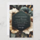 A rich tapestry of deep teal blossoms and creamy petals creates a luxurious, opulent feel. This design evokes a mood of sophisticated romance with its dark, moody floral arrangement. The dramatic color palette suggests an elegant evening event.