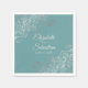 These beautiful napkins will make your wedding reception something special. They feature a simple yet elegant design with pale Grey text on a teal or turquoise coloured background with a lacy silver faux foil curls and swirls in the corners. Easily personalise with your names and the wedding date.