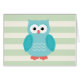 Cool, colourful kid's teal, turquoise, light blue owl, woodland animal theme design on pastel mint green and off white stripes pattern. Perfect gift for baby, toddler, kids, children, teens, or adults! Personalised the design by adding a child's name or custom text. Visit our store, Birthday Party House, for more great customisable boy and girl products!