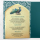 Teal Paisley Indian Peacock QR Code Wedding Tri-Fold Invitation