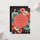 A dramatic and artistic design featuring a stunning contrast of vibrant colors against a dark background. Painterly poppies and anemones in shades of vivid coral, paprika, and cream are accented by cool teal blossoms and foliage. This moody botanical arrangement creates a bold and romantic atmosphere for your special day.