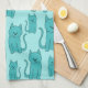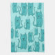 A cute pattern in teal with an aqua - turquoise colour background. This design features a pattern of sitting cartoon cats.