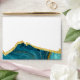 Teal Peacock Blue Gold Agate Wedding Envelope