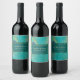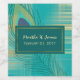 Teal Peacock Feather Wedding Wine Label