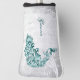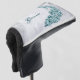 Protect your golf clubs with this unique Teal Peacock Personalised Golf Head Cover. Cover design features a vibrant teal peacock, a soft white leaf vine against a light grey grunge background with an area to personalise with your name. Additional gift items available with this design as well as a variety of colours.