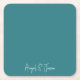 Teal Personalized Names Wedding Square Paper Coaster