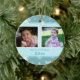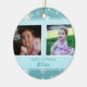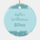 Baby's 1st christmas ornament customisable with your own baby photos in elegant turquoise blue and white festive snowflakes and stripes pattern. A memorable gift for any new mum this holiday season.