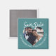 Teal photo modern script save the date magnet featuring a heart-shaped photo window, deep teal background, and hand-lettered script text in white. This design highlights your engagement photo while clearly presenting the wedding date and location in a bold yet refined color palette that suits both modern and classic celebrations. Ideal for weddings, destination events, vow renewals, or elegant engagements with a distinctive, timeless look. Easily personalize with your details.