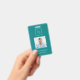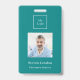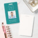 Teal coloured background, white text. Add your business logo, a photo, name and title.