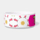 Create the ultimate mealtime treat for your pet with this personalised boho-inspired pet bowl featuring a vibrant pink, gold and teal geometric pattern on a clean white background. Perfect for modern and bohemian home décor, this pet bowl combines style and functionality seamlessly. Make your pet bowl part of your boho home space decor!