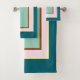 Teal Pink Brown Block Pattern Bath Towel Set
