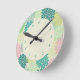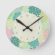 Teal & Pink Mums Round Clock