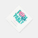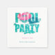 Throwing a tropical pool party and looking for some cool cocktail napkins? Look no further! This modern and trendy design features text art with a greenish-blue swimming pool, a hot pink float, and modern typography with water splashes. Personalise the napkins for a custom feel. There are matching invitations available as well.