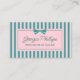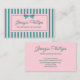 Teal & Pink Stripes & Bow Retro Business Card