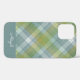 Elegant teal plaid with first name in an elegant script iPhone 12 Case.