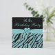 Womens' glamourous black and teal 30th birthday party invites with pretty art deco style font. Elegant and stylish custom turquoise printed zebra animal stripes glitter look invitations with a beautiful and cute printed teal blue heart jewel and pretty printed matching ribbon. These stylish fashionable invites are decorated both sides. Romantic, chic and classy, modern invitations. PLEASE NOTE: All products on Zazzle have flat printed images. Text, font and colour of font are all customisable. If you need assistance customising your product please contact me through my store and I will be happy to help.