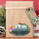 Make a lasting impression with this lovely and elegant monogrammed product label design featuring many different colourful flowers on a teal gradient background with a shimmery frame.