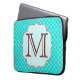 Teal Quarterfoil Lattice Quarter Foil Monogram Initial Personalised Custom Fabric Pattern 15" Laptop Case Bag