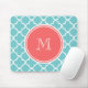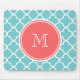 Teal Quatrefoil Pattern, Coral Monogram Mouse Mat