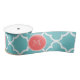 Teal Quatrefoil Pattern, Coral Monogram Satin Ribbon