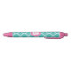 Teal Quatrefoil Pattern Custom Pink Monogram Black Ink Pen