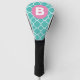 Teal Quatrefoil Pattern Custom Pink Monogram Golf Head Cover