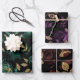 Teal Red and Purple and Gold Glitter Rose Pattern Wrapping Paper Sheet