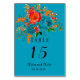 Teal Red Orange Botanical Floral Wedding Table Number