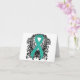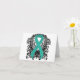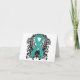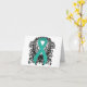 Teal ribbon with angel wings and a filigree pattern. The teal ribbon stands the awareness of Agoraphobia, Anxiety Disorder, Batten Disease, Dissociative Identity Disorder, Ectodermal Dysphasia, Food Allergies, Fragile X, Myasthenia Gravis, Obsessive-Compulsive Disorder, Ovarian Cancer, Tsunami Victims, Tourette's Syndrome awareness, Panic Disorder, Polycystic Kidney Disease, Polycystic Ovarian Syndrome, Scleroderma, Posttraumatic Stress Disorder, Progressive Supranuclear Pals. April is Post Traumatic Stress Disorder Awareness Month, Rape and Assault Awareness Month, and Substance Abuse Awareness Month. May is Food Allergies Awareness Month. June is Scleroderma Awareness Month and Myasthenia Gravis Awareness Month. September is Ovarian Cancer Awareness Month and Polycystic Ovarian Syndrome Awareness Month. October is Anxiety Disorder Awareness Month.