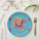 Teal Rose Flower Pattern Paper Party Plate