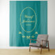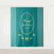 Create a personalised wedding backdrop. Features a teal rose design along with the name of the wedding couple and the date of the wedding. Just change the text to fit your needs. Use the template to personalise.