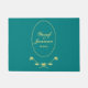 Create a personalised wedding doormat. Features a teal rose design along with the name of the wedding couple and the date of the wedding. Just change the text to fit your needs. Use the template to personalise.
