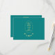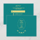 Add an elegant touch to your wedding invites with this teal and gold wedding RSVP response card. The front features a rose design along with, "Save the Date," the name of the couple, and the date of the wedding ceremony. Response details are on the back including the deadline for the RSVP and selection of meal choices. Use the template to personalise.
