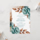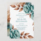 Elegant teal watercolor roses paired with warm copper leaves create a romantic and modern floral frame design. This invitation features floral arrangements in all four corners with a clean white center, perfect for adding your wedding details. Ideal for fall weddings, winter weddings, boho celebrations, and modern romantic themes. Beautiful for invitations, RSVP cards, details cards, programs, and full wedding stationery suites.