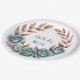 Teal Roses and Copper Leaves Wedding Paper Plate